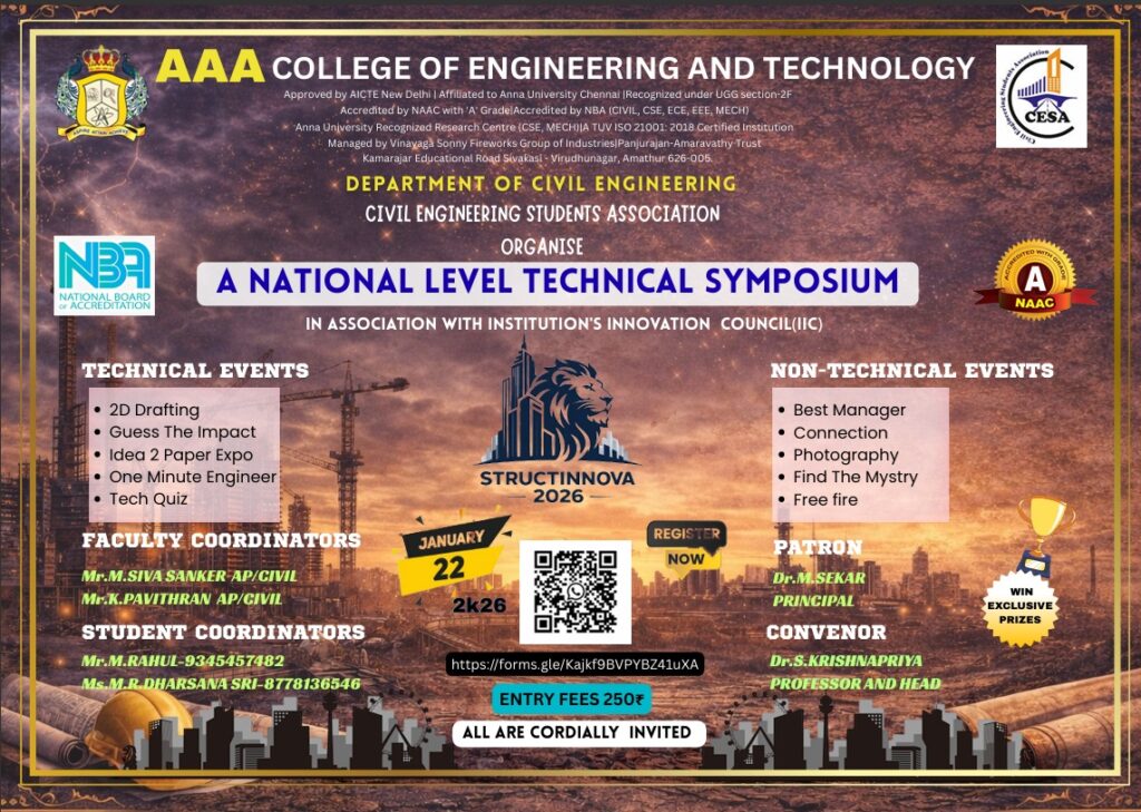 AAACET, Sivakasi was established in the year 2013, is one among the renowned colleges for imparting technical education in the fireworks city.