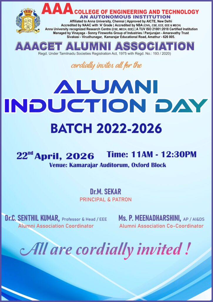 - Alumni Induction Day for IV Year Students on 22-04-2026
