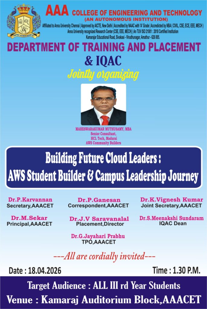 Latest updates of AAACET in terms of News, Events, Sports, Culturals, Seminars and announcements
