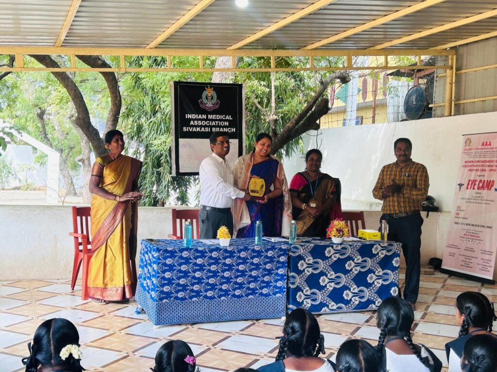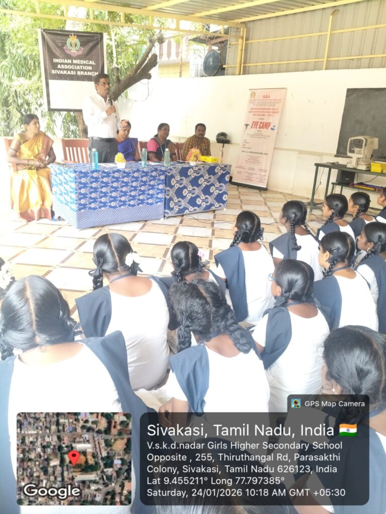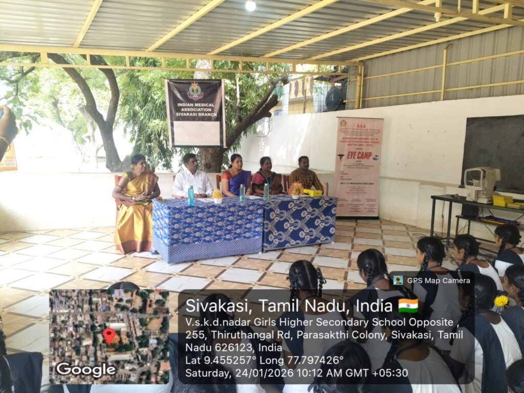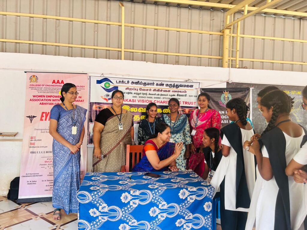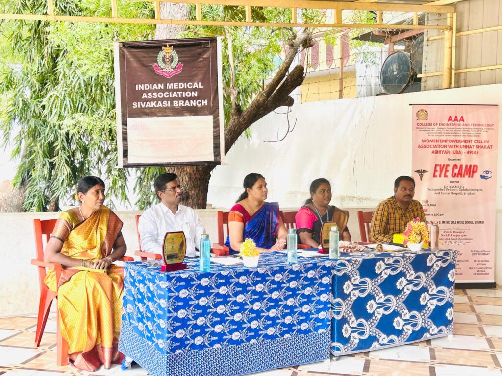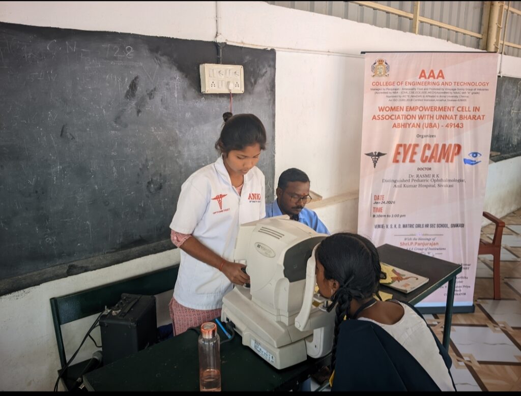 On the occasion of National Girl Child Day, 24th January 2026, the Women Empowerment Cell and Unnat Bharat Abhiyan (UBA) AISHE Code-49153 of AAA College of Engineering and Technology, Sivakasi, successfully organized a one day Free Eye Check-up Camp at VSKD Nadar Matriculation Girls Higher Secondary School, Sivakasi, from 9:30 AM to 1:30 PM. The event witnessed active participation of 370 students.