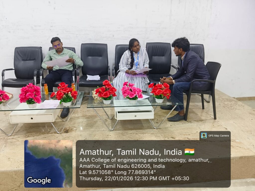 AAA College of Engineering and Technology is proud to announce that will be Innowell Engineering International Private Limited conducting a career placement programme for the 2026 graduating batch on 22nd January 2026. This exclusive opportunity is open to students from the CIVIL & MECH department, with a competitive salary package of 3 LPA. As part of the preparation, our Training and Placement Cell has arranged focused training sessions that include aptitude practice, technical workshops, and mock interviews to help students perform confidently during the drive. The training focuses on strengthening core technical concepts, problem-solving techniques, and practical applications relevant to the electrical and electronics domain. Additionally, sessions on resume building, communication skills, and group discussions are being conducted to enhance student readiness. Students are also encouraged to strengthen their knowledge in areas such as circuit analysis, power systems, control systems and electrical machines which are vital for technical interviews. The placement drive will follow a multi-round selection process including aptitude tests, technical assessments, and HR interviews. This is a valuable opportunity for students to start their careers with a reputed company and gain real-world exposure in their domain. We strongly encourage all eligible students to actively participate, prepare thoroughly, and make the best use of this placement opportunity.
