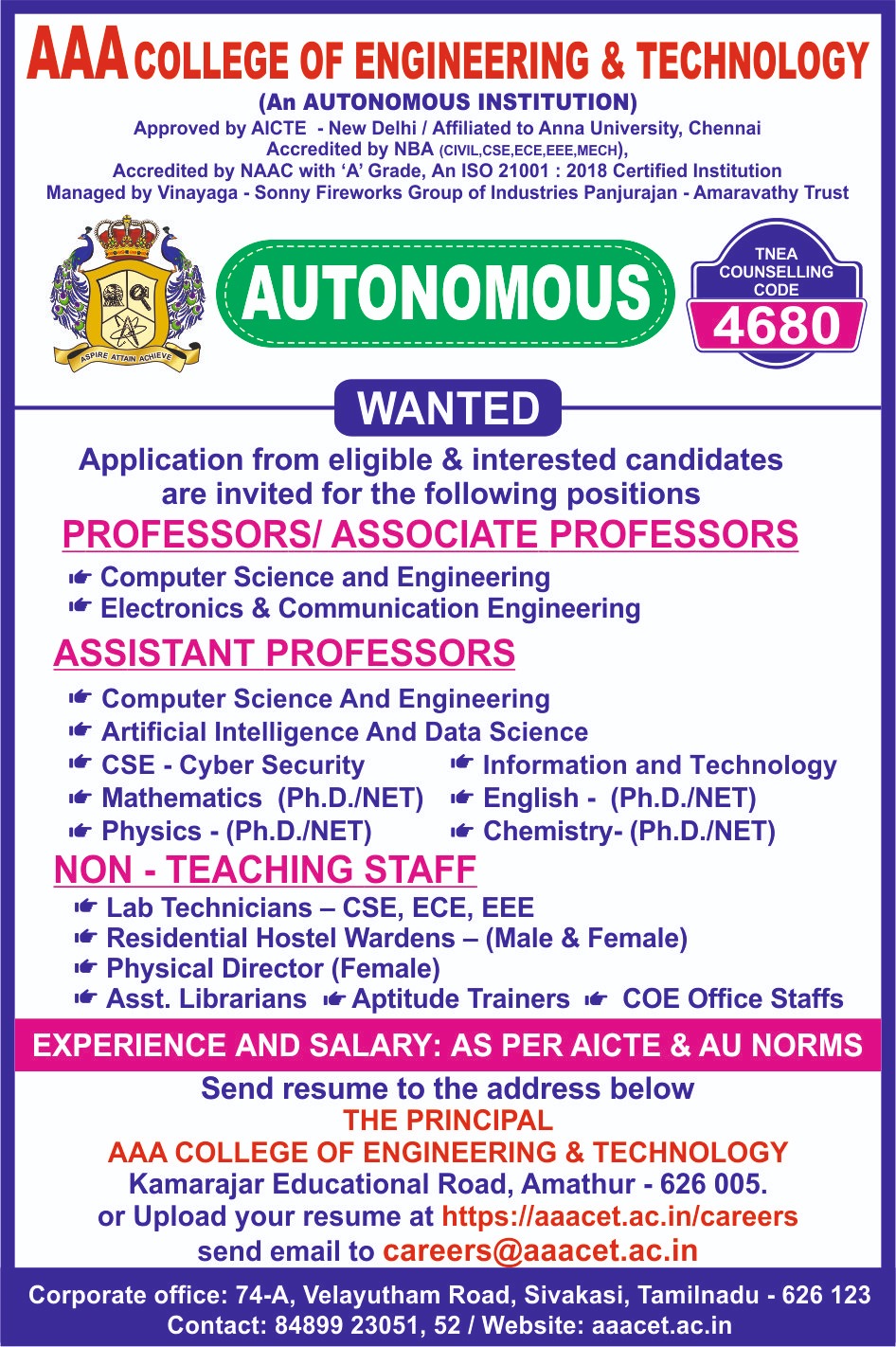 AAA provide meritorious education with a commitment to Excellence and find opportunity to apply the knowledge and skills.