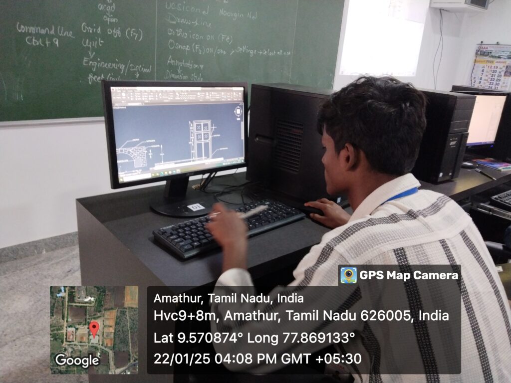 The Department of Civil Engineering organized a certificate course on “BUILDING PLANNING AND DETAILING WITH AUTOCAD 2D” from 22/01/2025 to 27/01/2025 in CAD lab, Cambridge Block, AAACET. Mr.S.Keerthipriyan, AP/Civil & Dr.J.Christiarani, AP/Civil, were the resource persons for the course. The course was offered to second-year B.E. Civil Engineering Department students. The course “Planning & Drafting of Building Using AutoCAD 2D” provides participants with a comprehensive understanding of AutoCAD tools and techniques essential for building planning and drafting. The five days course helped the students to plan the requirements of buildings and draw the approval plan as per DTCP norms. The participants attended all the section with full interest and cleared their doubts during the question and answer section. The five days certification course came to an end with participants sharing their feedback.