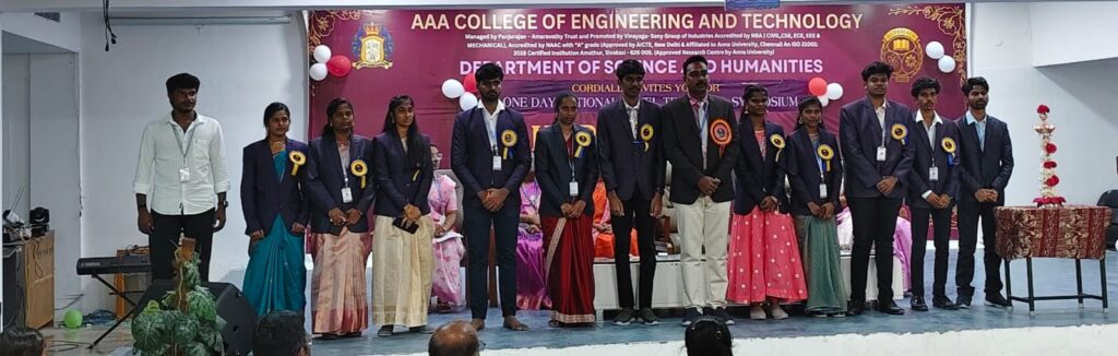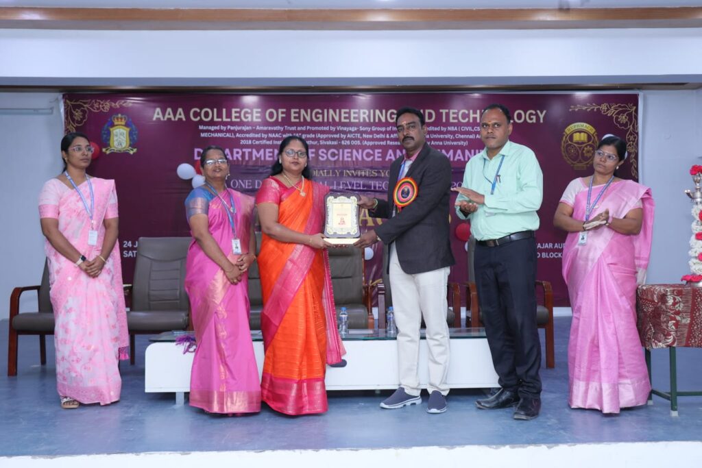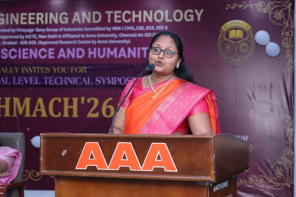 The Department of Science and Humanities, AAA College of Engineering and Technology, organized a One-Day National Level Technical Symposium “HUPHMACH 26” on 24.01.2026. The inspiring address of the Chief Guest, Dr. M. Arthi, Assistant Professor (Senior Grade), SRM Valliammai Engineering College, Chennai, on communication skills for career success greatly motivated the students.