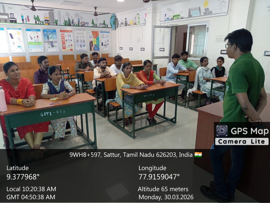 During the training, students gained valuable exposure to solar panel installation techniques, system operation, maintenance practices, and safety standards followed in the industry. The hands-on training sessions conducted by industry experts enhanced their confidence and technical competency, making them better prepared for careers in the renewable energy sector. The programme also focused on improving employability skills by equipping students with job-oriented knowledge and practical experience.