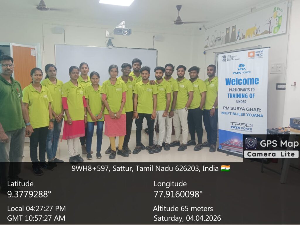 The Department of Electrical and Electronics Engineering, AAA College of Engineering and Technology, Sivakasi successfully facilitated the participation of selected final-year EEE students in a five-day Rooftop Solar Supervisors Training Programme conducted under the Corporate Social Responsibility (CSR) initiative of Tata Power Company Ltd. The students were nominated through a structured and merit-based selection process. The programme was designed to strengthen their technical knowledge, practical skills, and overall understanding of renewable energy and sustainable technologies.