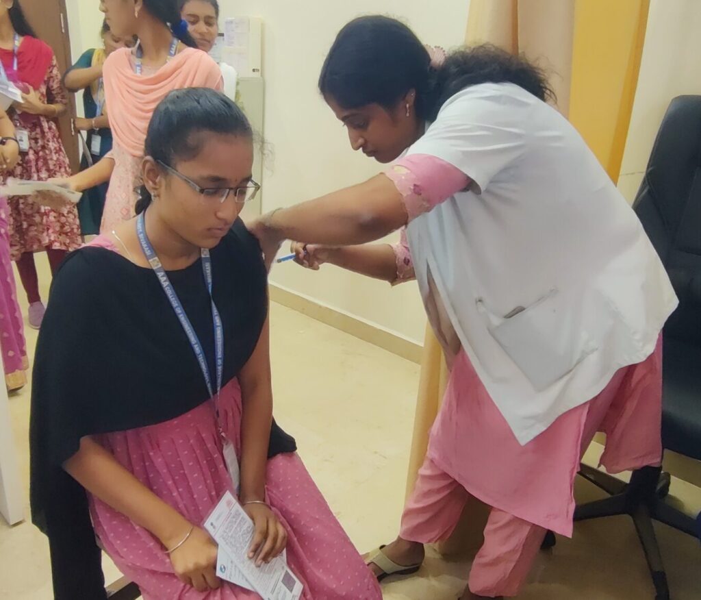 The primary focus of the program was the administration of *HPV vaccination* *to students* , aiming to prevent cervical cancer and promote awareness on women’s health and preventive care. The initiative reflects the institution’s commitment to the well-being of students by encouraging early protection against serious health issues.