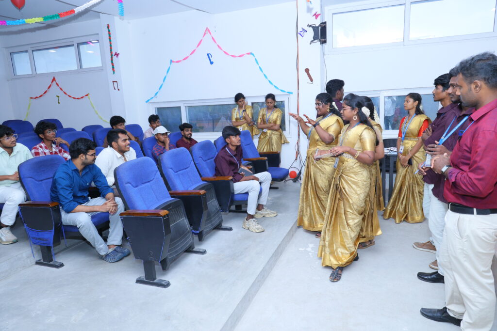 The chief guests of the event were Mr. S. Manimaran, B.E., Junior Engineer Grade–II, ESI Substation, Sivakasi, and Ms. M. Rashmika, B.E., EEE Alumna (2019–2023 Batch), Programmer Analyst, Cognizant Technology Solutions, Bangalore. Mr. S. Manimaran shared his professional experiences from the power sector, providing valuable insights into the operation and maintenance of substations, renewable energy integration, and the importance of safety and reliability in power systems. He encouraged the students to develop technical expertise and leadership qualities to succeed in the energy industry. Ms. M. Rashmika, an accomplished alumna of the EEE department, inspired the audience by narrating her journey from college life to the corporate world. She emphasized the importance of perseverance, communication skills, and adaptability in achieving professional success in the IT and technology sectors.