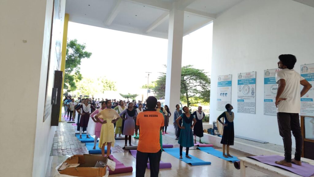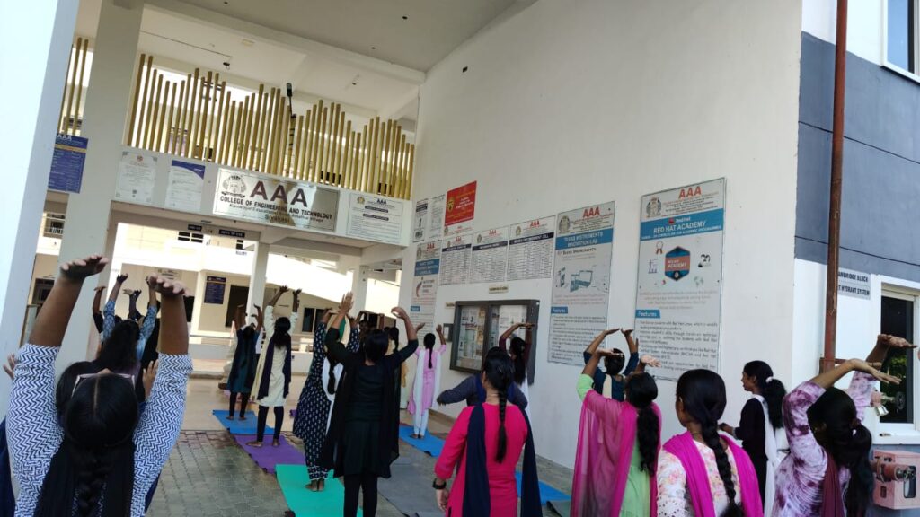The AAA College Of Engineering And Technology Observed the International Yoga Day  participation from Students And Faculty .The Celebration  aimed to spread awareness about the importance of Yoga  in Promoting physical, mental, and Spiritual well-being.