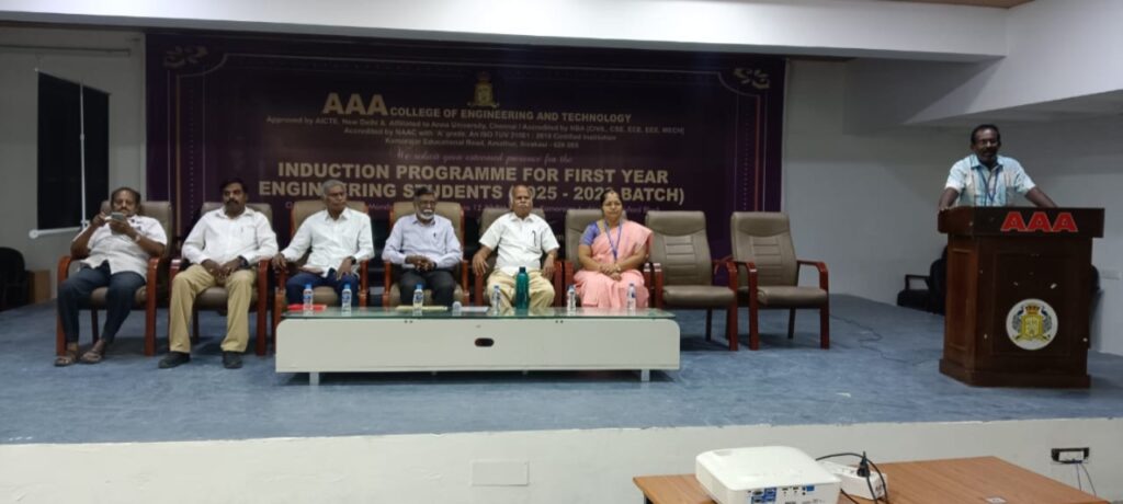 The Department of Science and Humanities organized an Awareness Programme for First-Year Engineering Students (2025-2029 Batch). The programme, titled “Yoga for Youth Empowerment,” was held on August 21, 2025, at 9:15 A.M. in the Kamarajar Auditorium, Oxford Block. Dr. C. Gayathri, AP/ Mathematics, delivered the Welcome Address. Dr. K. Anand, Academic Coordinator, honoured the Chief Guest, Mr. M. Raja Sudalai Muthu. Dr. R. Anitha, AP/ Physics, gave an introduction about the Chief Guest. The programme was inaugurated by Mr. M. Raja Sudalai Muthu, who delivered splendid ideas on yoga and meditation. Yoga offers significant benefits for youth empowerment by enhancing physical and mental well-being, fostering self-confidence, and improving focus and concentration. Students learned that yoga enhances focus, concentration, and memory, which can be particularly helpful for academic performance. Yoga helps to manage stress, anxiety, and depression, common challenges faced by young people. Students participated enthusiastically and gained knowledge and understanding of youth empowerment. Dr. M. Balamurugan, AP/Chemistry, delivered the Vote of Thanks.